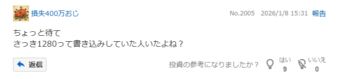 すげえ板薄銘柄なのにw pic.twitter.com/fDAw5cLweG— kc@株&日経先オプ (@kabugamelive) January 8, 2026