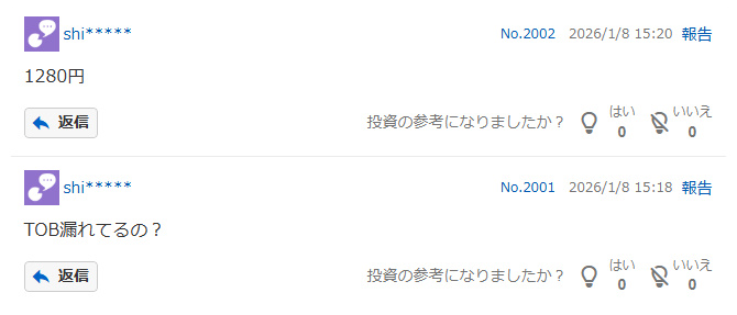 アホー掲示板に事前にTOB価格書いて1円もズラさず当てたやついるのか。どういう事?