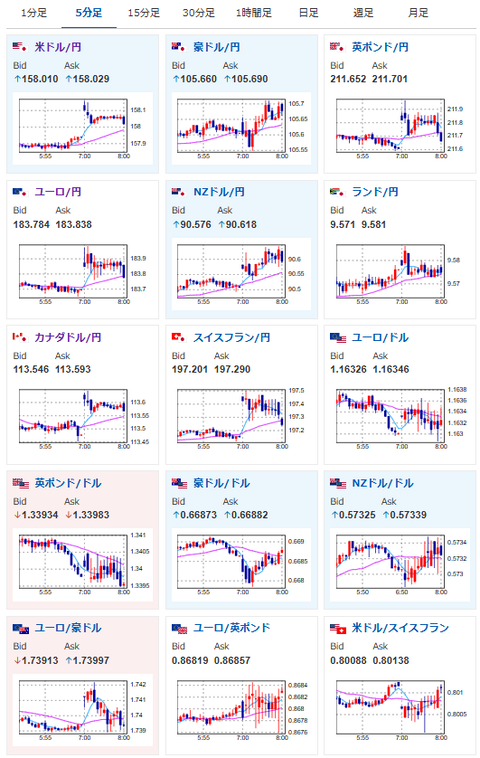1: 以下名無しさんに代わりまして管理人がお伝えします 1848/01/24(?)00:00:00 ID:money_soku 2026年01月12日08時06分取得: やる夫今日のポイント:・衆院解散報道による期待感、高市政権の積極財政強化が期待され円売り、株買いの動き・日本の緩和姿勢も金価格上昇を後押し・基本的にはドル円、株、金共に上値追い、為替介入は注意が必要なライン 本日のスケジュール(特に重要なイベントは赤字で表示):前回発言は、直近であれば大きくスタンスが変更される可能性は低いため影響度低久しぶりの発言、スタンスの変化、中央銀行への影響力などがある場合、相場への影響大 17:00 スイス)12月スイスSECO消費者信頼感指数(予想:▲33.0) 17:50 欧)デギンドス欧州中央銀行(ECB)副総裁、講演 19:30 インド)12月インド消費者物価指数(CPI、予想:前年比1.56%) 13日01:30 米)米財務省、3年債入札 13日02:00 仏)ビルロワドガロー仏中銀総裁、講演前回発言(6日前):米政権の政策、ドル決済の代替需要を助長=仏中銀総裁(Reuters) 13日02:30 米)ボスティック米アトランタ連銀総裁、討議に参加前回発言(2日前):アトランタ連銀総裁「インフレ依然高すぎ」、FRBの主要課題(Reuters) 13日02:45 米)バーキン米リッチモンド連銀総裁、イベントに参加前回発言(2日前):米雇用統計、低調な採用状況の継続を反映-リッチモンド連銀総裁(Bloomberg) 13日03:00 米)米財務省、10年債入札 1001: 以下名無しさんに代わりまして管理人がお伝えします 1848/01/24(?)00:00:00 ID:money_soku おはようございますお。 本日日本市場は成人の日でお休み。 週明けの為替相場は、先週末にでた衆院選報道期待で円売り気味に推移しているお。 引き続き円売り、株買い、金買いの見通しに変化はないけれど、為替介入だけには注意して追いかけたいお。 document.getElementById(‘kznott2frame’).onload = function() { try { const contentHeight = this.contentWindow.document.body.scrollHeight; this.height = contentHeight; } catch (e) { console.error(“error”); } }; 続きを読む Source: 稼げるまとめ速報 投稿ナビゲーション 【悲報】いい歳して独身の男は気持ち悪いという風潮、なくならない ワイ映像作家志望、AIの出現で絶望する