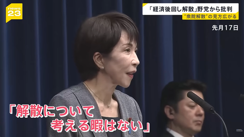 暇だったんだな… pic.twitter.com/A1FsXnlIv5 — 🍛何食べ太 (@whatIvedone6080) January 12, 2026 https://www.youtube.com/ 働いて働いて働いてまいりますとか言いながら実稼働何日やねん — イナバX❤ (@soonsoul) January 13, 2026 ちゃんとした調査を一回もやらずにマスコミさんの政権支持率調査だけ見て解散に踏み込んだ高市早苗さんの度胸は凄いよな… — 🇯🇵火鍋チャンネル(火鍋に入れられる側) (@hinabe_ch) January 13, 2026 内閣支持率がこれより上がる可能性は見込みにくいし速攻をかける判断は間違ってないと思うけどね高市の気質的にも後手に回る方が印象悪い — アスパラガス (@Asuasupara_gasu) January 13, 2026 解散する確率が99%が99.5%ぐらいになってる — アナゴ(無料版) (@perfect_anagooo) January 13, 2026 https://www.youtube.com/ 卓球暴威テレビ出演してニコニコしながら解散についてのコメントしてた — まるたばつお (@marutabatsuo) January 13, 2026 大義のない解散なんていくらでもあったと思うが、選挙をする時期がクソと言うか現場の負担がここまで大きい解散は初めてだと思う() — あまりす (@kokuminritetu) January 13, 2026 このタイミングでの解散、確実に外交日程が影響しているよなあ…日米首脳会談とその後の米中首脳会談前後までに政治基盤を盤石にする「必要」を迫られているとしか解釈が出来ない。 — バルジ (@Bulge1994) January 12, 2026 日経平均は終値を史上最高値で取引終了。衆院解散示唆がここまで評価されるとは思いませんでした。 — Hobby Uze☃ (@HobbyUze) January 13, 2026 https://sekai-kabuka.com/ ※日経平均株価、歴代7位の上げ幅を記録&史上最高値を更新 今日みたいな相場て、天井にならんのかな — Oyacky:おやき (@Pratender) January 13, 2026 「日本株すげえ!みんな爆益だね(おかしい。フルポジなのに俺だけマイナス・・・)」 — ヤリ手ジジイ (@yaritejijii) January 13, 2026 ロング寄りにしていたし今日めちゃくちゃ恩恵あると思ったら、前日比マイナスだったんだが…? — Inside+Outside→Zone (@zone_investor) January 13, 2026 まじで何一つ恩恵がない( — 朝倉かおる7/7🚼(3) (@AsakuraKaoru) January 13, 2026 指数の帳尻合わせるために、指数外の株売って指数内の株に移してる感がすごいw — ussi (@tauren_jp) January 13, 2026 ここまで陽気な感じのしない株高は初めて経験する — 三味線 (@f10523) January 13, 2026 この株価は自民の何議席を織り込んでるの? — gorin (@gorin_strategy) January 13, 2026 発射台が低いから勝つには勝ってギリギリ単独過半数いけるかどうかってとこじゃないすか、維新がなんかしらんが大阪から西にどんどん浸食して議席増やしそう。 — もちベーコン (@qxqxqxaquas) January 13, 2026 わしゃ自民が圧勝すると思っちょる(老害談) — エダ (@blacklago_n) January 13, 2026 勝ち要因・内閣支持率が高い・野党乱立 負け要因・自民党支持率が低い・地方選で自民が勝てていない — 常磐 (@tokiwa_pol) January 13, 2026 冒頭解散、正直かなりの賭けな気もするのだが、どのような「大義名分」を掲げるのだろうか。大勝するには大義名分とそれなりの「理屈」が無いと厳しいが、高市早苗がそれを上手く打ち出せるとはとても… — バルジ (@Bulge1994) January 13, 2026 何解散って呼ぶのがいいだろうな?今んとこ大義もないみたいだし、円安促進解散とでもしておこうか — 駅前は朝の七時 (@ystak13am7) January 13, 2026 為替ヤバいな円がどんどん劣化してる — ラーズ(ハクメイ)@ポケGoトレーダー (@razgriz1979) January 13, 2026 https://sekai-kabuka.com/ 高市トレードって円売り債券売り先物買いでインフレトレードなんだよな。実質賃金さらに下がりそう。ボーナス下げられて社長やっちゃう事件や、生保受けれず母子が餓死する事件とかそんなんばっかり。 — 曖昧3センチ (@gkaki53) January 13, 2026 衆院解散検討で円安って自民党が勝つと更に財政規律が緩むって見込なのかな。しかしこれ以上金利が上がったらただでさえギリギリの住宅ローン組んでる人達マジで危なくないか。 — ボヴ (@cornwallcapital) January 9, 2026 パパ活女子が昼職+土日パパ活当直ありで週7働いてるって聞いて、やはりどの世界もハードワークこそ正義だなと思うなど — ヒロ@会社を作った医者のブログ (@doctor_hhm) December 3, 2025 既におっさんの命は羽毛より軽いけど、そろそろ金出してなんとか質量が得られるレベルになりそう。マイナス質量だから、気を抜いたらすぐ天まで登って昇天させられる時代くる — ussi (@tauren_jp) November 28, 2025 https://kabutan.jp/stock/chart?code=0000 Source: 市況かぶ全力2階建 投稿ナビゲーション HP、日本向け製品に中国製メモリの採用を検討か 【衝撃】2025年の年収700万は1995年の年収500万と同じ