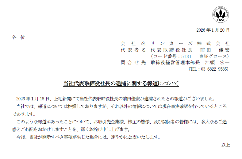 リンカーズ、代表取締役社長逮捕。 pic.twitter.com/Sjr019PfHB