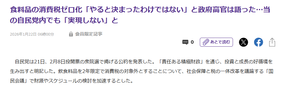 自民党の食料品2年消費税0は、選挙に勝ったら検討をしてもいいかな、ぐらいなので票集めの釣り公約かもしれん。なかなか卑怯である