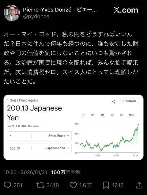 1: 2026/01/22(木) 09:49:59.08 続きを読む Source: 投資ちゃんねる – 株・FX・仮想通貨・投資2chまとめ 投稿ナビゲーション 【朗報】ワイ無職、メルカードの審査に通る 壁に女性遺体を隠したバー店主、たこ焼きパーティ中しきりに「なんか臭いしますか?」と聞いていた