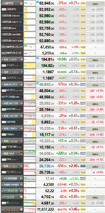 1: 稼げる名無しさん :2026/02/02(月) 12:25:46.73 ID:lh8ENxWC9 2日午前の東京株式市場で日経平均株価は上昇し、一時前週末に比べて924円(2.50%)高い5万4247円15銭をつけた。衆院選の情勢調査で「自民党優勢」との見方が強まり、短期筋の買いが入ったようだ。 https://www.nikkei.com/article/DGXZQOUB020DYTS6A200C2000000/ 1001: 以下名無しさんに代わりまして管理人がお伝えします 1848/01/24(?)00:00:00 ID:money_soku 日本も米国もリスクオフムードが広がってきた模様。増税報道影響では?という噂もあり。関連記事: 【速報】消費税12%案、浮上か今週ビッグテックの決算も多いし要注意だお。 金価格のほうも足踏み(やや下げ)が続いているな。 なかなか方向感がつかめない相場だな。 document.getElementById(‘kznott2frame’).onload = function() { try { const contentHeight = this.contentWindow.document.body.scrollHeight; this.height = contentHeight; } catch (e) { console.error(“error”); } }; 続きを読む Source: 稼げるまとめ速報 投稿ナビゲーション 緊急避妊薬『ノルレボ(1錠7480円)』今日から薬局で販売。性行為から72時間以内服用で妊娠8割防ぐ 医者「眠れない方は寝る前のネットやビデオゲームを控えてください」ワイ「おかのした」