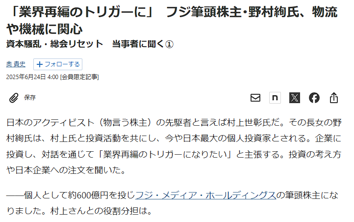 村上世彰のフジテレビへのリベンジが勝利に終わったのか。二世代にわたり戦い、感慨深いだろうね。