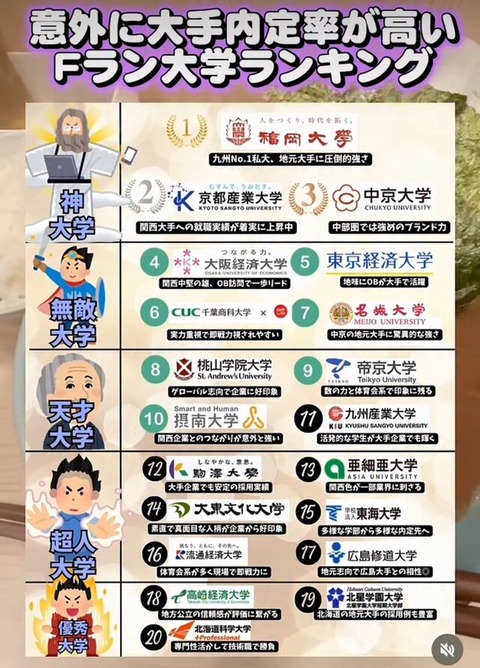 1: 稼げる名無しさん :26/02/03(火) 17:35:27 ID:q50i これhttps://imgu.jp/i/a19a6415gp.jpeg 2: 稼げる名無しさん :26/02/03(火) 17:36:18 ID:dfrT Fランとは 3: 稼げる名無しさん :26/02/03(火) 17:36:47 ID:Wkq4 高崎経済あるの草 1001: 以下名無しさんに代わりまして管理人がお伝えします 1848/01/24(?)00:00:00 ID:money_soku Fランの定義とは?? 赤本を読めば卒業生の進路も載っているので、もし行きたい企業があるなら、特定の大学を狙っていくのもアリだな。 福岡大学(医学部医学科を除く-一般選抜前期日程) (2026年版大学赤本シリーズ) 価格: 2365円 (2026年02月04日調査価格) ポイント: 71pt Amazonで見る Powered by 稼げるまとめ速報 福岡大学(医学部医学科を除く-一般選抜前期日程) (2026年版大学赤本シリーズ) の詳細はこちら document.addEventListener(‘DOMContentLoaded’, function() { var widgets = document.querySelectorAll(‘.ad-widget-unit’); var fallbacks = document.querySelectorAll(‘.ad-fallback-unit’); setTimeout(function() { widgets.forEach((widget, index) => { var fallback = fallbacks[index]; var isFiltered = ( widget.offsetHeight === 0 || widget.offsetParent === null || window.getComputedStyle(widget).getPropertyValue(‘display’) === ‘none’ ); if (isFiltered) { fallback.style.display = ‘block’; } }); }, 150); }); 続きを読む Source: 稼げるまとめ速報 投稿ナビゲーション モームリの社長って言うほど悪いか? ワイのモトローラちゃんもう限界
