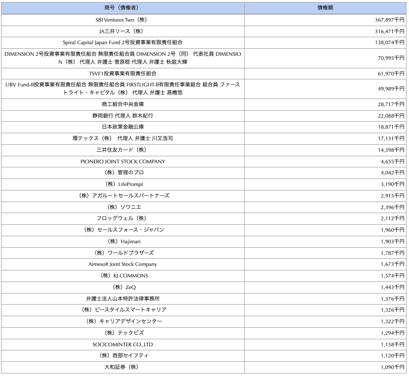 債権者名簿が出てた。