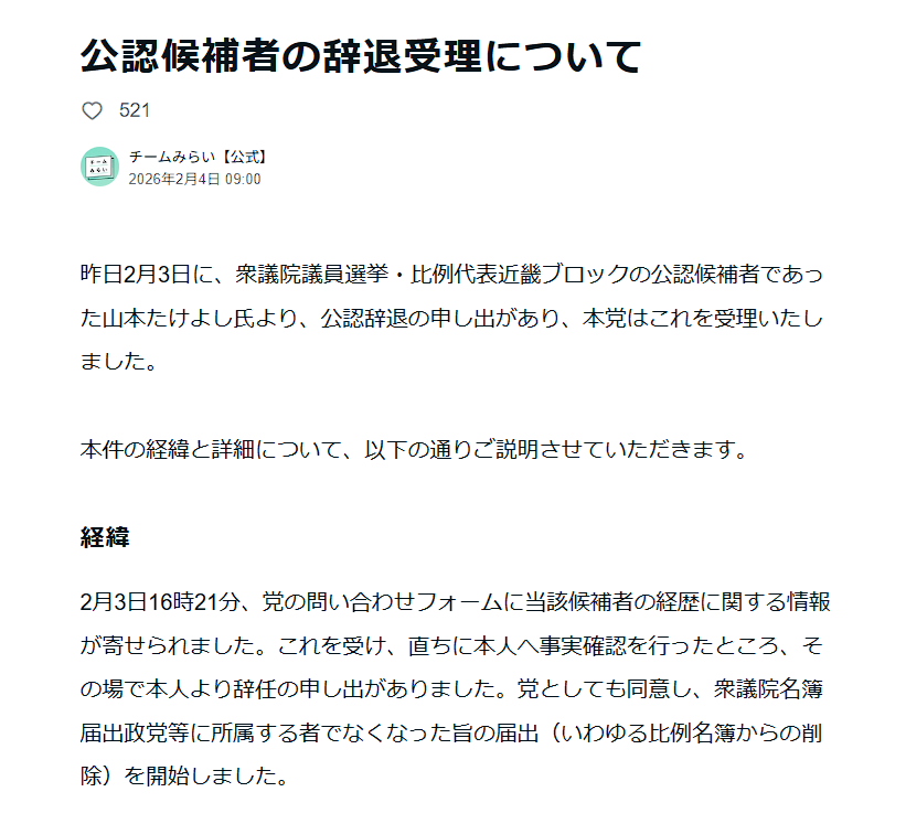 知らないまま立候補させたならガバガバ過ぎるし営業責任者ならバレないだろうとたかを括ってたパターンだろ。— リハビリ用 (@r18rensyu) February 4, 2026