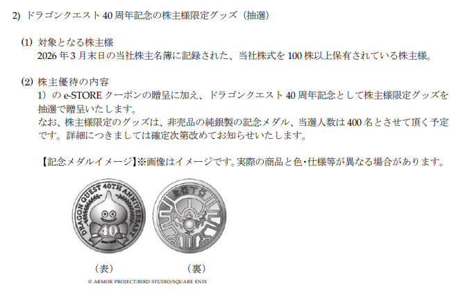 ていうかスクエニならそこは純金製の小さなメダルにしとけって