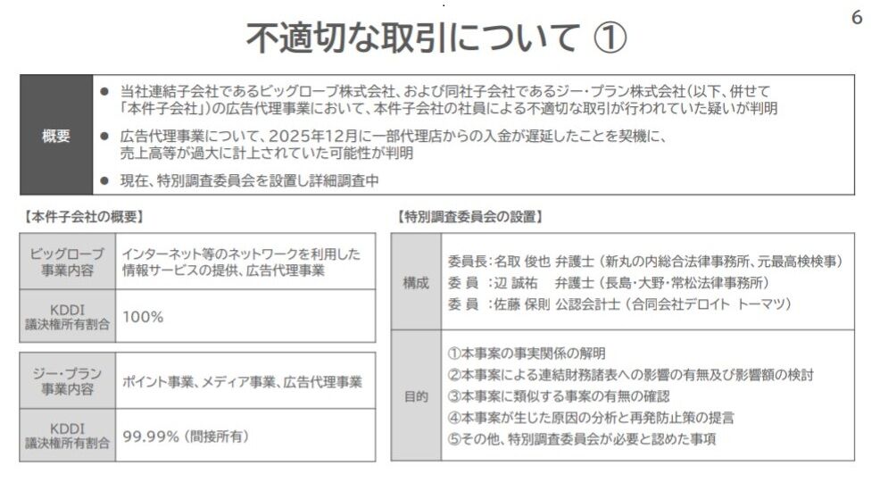 KDDI、ビッグローブ(及びその子会社)売上の架空計上案件について、現時点の業績影響出てるけど金額デカくないか…?
