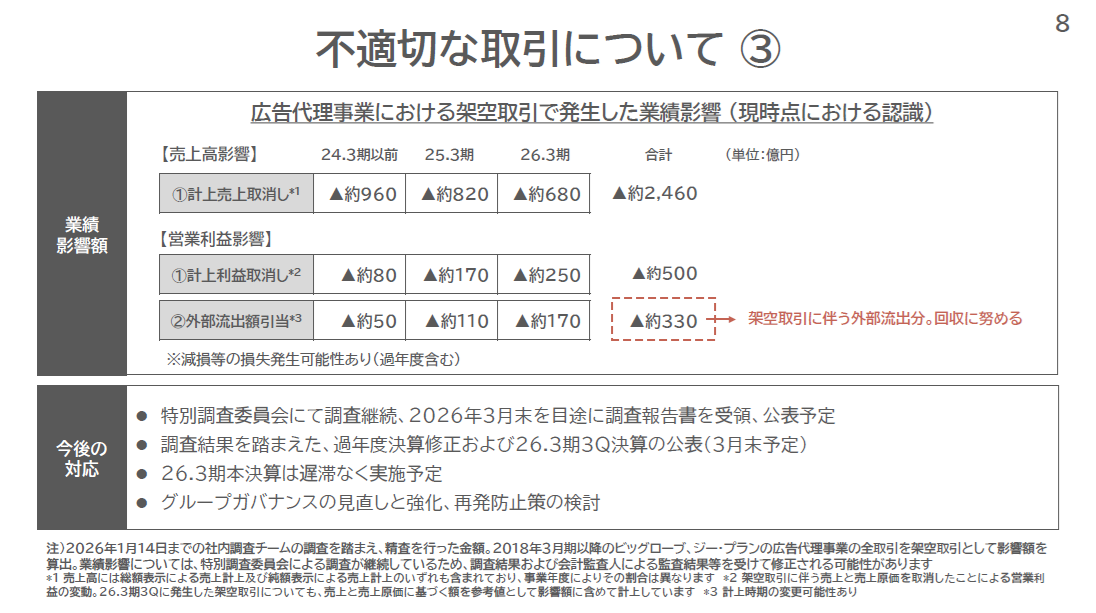 売上影響3期合計で約2,460億円…外部流出約330億円ってなに… pic.twitter.com/kU984uwbxC— 空き缶 (@akikankeri) February 6, 2026