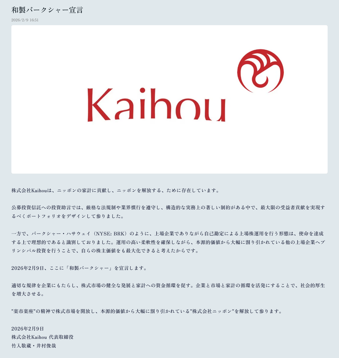 ※井村ファンドのお騒がせ内紛劇、不満爆発から29時間後の深夜1時に井村俊哉のKaihouと渡辺克真のfundnoteのお詫びコメントが出揃いようやく火消しに走る(2026/01/26)