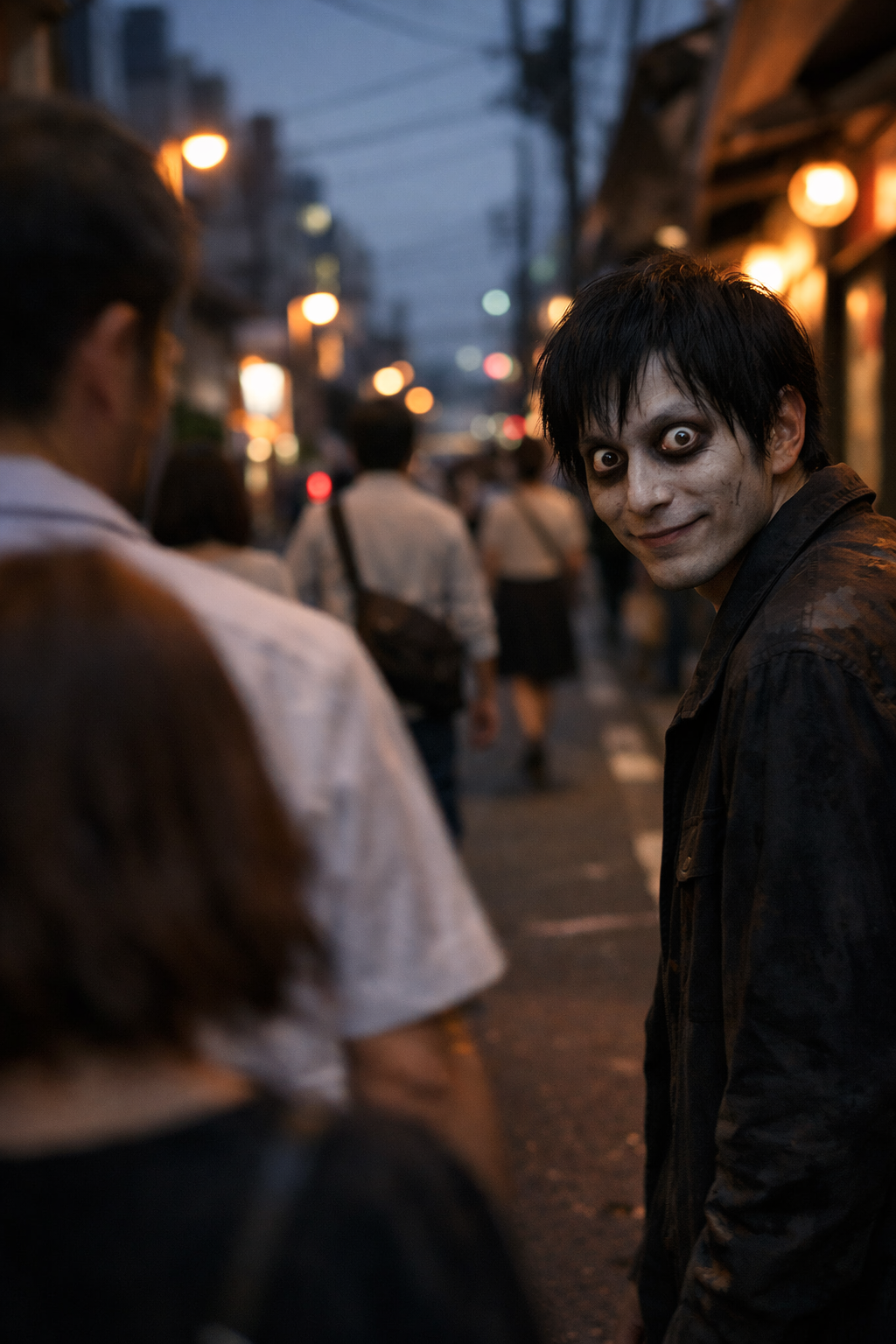 深夜にニッコニコで独り言いってるヤバい奴が後ろから迫ってきたとき心臓飛び出そうやったわ