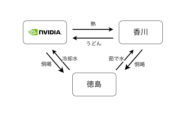 「香川県 (恫喝) → NVIDIA (AI資源を提供)」