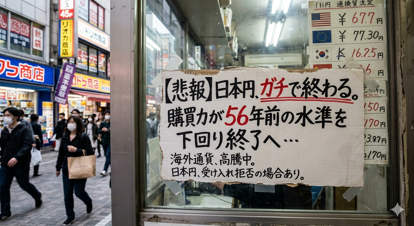 1: 2026/04/26(日) 20:45:05.11 ID:KZqWYKD09 「円」の価値が凋落(ちょうらく)し続けている。国際決済銀行(BIS)によると、通貨としての総合的な実力を示す「実質実効為替レート」は今年 […] 投稿ナビゲーション ナフサ不足「このままでは6月に詰む」と公言した識者が真意を明かす 「手取り20万で東京に住むのはキツイ!」家賃高騰で3分の1ルール崩壊!