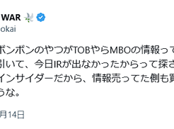 MBOの『インサイダー情報』を販売して相場操縦してたやつがいるなら逮捕で、そんな奴がいなかったとしたら偽情報で暴落トリガー引いた奴が逮捕、それで頼む — もちベーコン (@qxqxqxaquas) August 14, ・・・