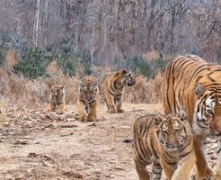 これは珍しい。5匹もの子供を連れたアムールトラの母子の映像が中国で初めて記録される
