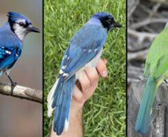 気候変動で生息域が重なり、野生下でアオカケスとインカサンジャクの交雑種が誕生