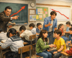昭和学校「これを覚えろ!いいから勉強しろ!」←学力右肩上がり 令和学校「勉強より対人能力、主体性を見につけよう」←学力過去最低