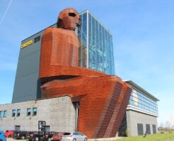 巨人に進撃、オランダの人体博物館のビルに埋め込まれた巨人の像