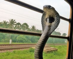 キングコブラがインドの列車に無賃乗車、生息地を失い人間の生活圏に入り込む