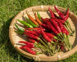 中国の養魚場で大量の唐辛子を餌に育てられる魚たち