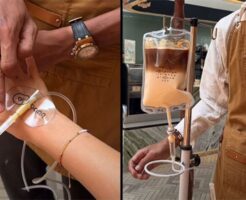 image credit: Instagram @buba_tea_bali インドネシアのバリ島にあるカフェ「Buba Tea Bali」では、病院で使われる点滴そっくりの容器を使って、カフェラテや抹茶ラテを提供して・・・
