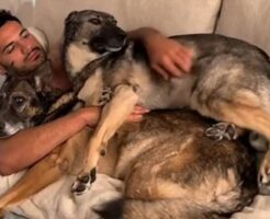 雷を怖がる元爆発物探知犬、飼い主の腕の中に飛び込み身をゆだねる姿にグッとくる。