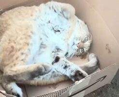 結局ネコ科はみんなこう。Amazonの箱で遊び倒す野生のボブキャットがイエネコと一緒