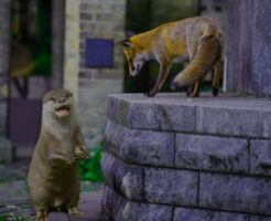キツネとカワウソが夜の街で行動を共にする姿が監視カメラにとらえられる