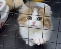 ケージの隙間から脱出を試みた子猫、うっかり変顔になってしまう