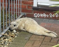 住宅街の玄関に迷子のアザラシがちょこん。郵便配達員が発見し無事保護