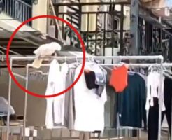 遊び?それともわざと?洗濯物を次から次へと落とす鳥