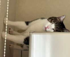 【混乱必至】猫の“直立横寝”に4.2万人困惑「理解が追いつかない」