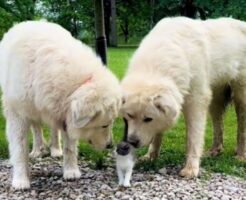 もはや無敵、2匹のグレート・ピレニーズが子猫を完全にガードするやさしい世界