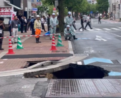 【速報】福岡で道路陥没 ガチでヤバそう