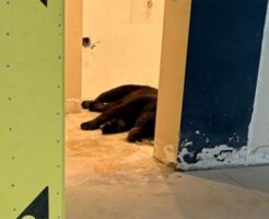 僕もう疲れたよ…マンションのロビーで眠るクマの子を発見(フロリダ州)