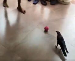 カラスが少年に見事なサッカーパス!ロナウジージョならぬクロウジージョか?