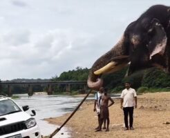 @saidkoya90 2025年5月、インド南部ケーララ州で、一頭のアジアゾウが川にはまって動けなくなってしまったSUV、トヨタ・フォーチュナーを見事救出した。 車は既に3輪のタイヤが水に沈んだでおり、引き上げるのは・・・