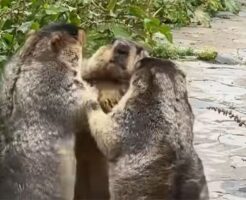 マーモットが三つ巴のストリートファイト、だが彼らなりのルールがあってちゃんと守っている