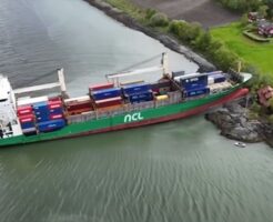 Man wakes up to find a container ship in his garden/Youtube ノルウェーの男性が早朝、隣人に起こされて外に出てみると、自宅の前庭に巨大な貨物船が座礁していたとい・・・
