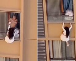 不倫中、妻が突然帰って来た!10階の窓からぶら下がり逃げ出す愛人