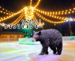 氷が張られたばかりのスケートリンクに一番乗りしたのは、地元でなじみのクマだった!