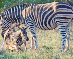 がんばれ!もうちょっと!シマウマの赤ちゃんの最初の一歩