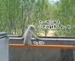 ひょこんと手すり棒に座り、景色を眺める犬の姿がかわいすぎた!