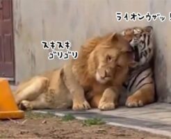 めっちゃ好きやん。ライオンが一方的にトラに愛情を注ぎまくる、ネコ科の面白光景