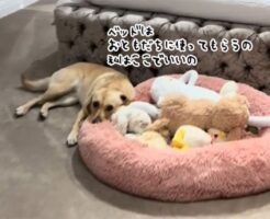 Tiktok@doristhegoldenlab ゴールデン・ラブラドールのメス、ドリスは、自分のぬいぐるみたちを何よりも大切にするやさしい犬だ。 ある日、飼い主が部屋に入ると、ドリスはふかふかのベッドにぬいぐるみた・・・