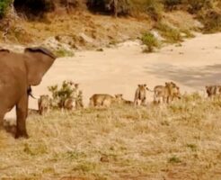 ジャングル王に俺はなる!20頭ものライオンの群れを蹴散らした若いアフリカゾウ