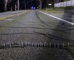 誰が?いったい何のために?アメリカの道路に500本もの釘が埋め込まれているのを発見