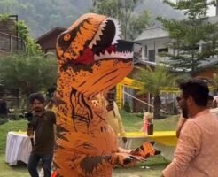 花嫁が恐竜になっちゃった!インドの結婚式でドッキリサプライズ